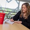 Designed like a to-go cup with a durable build and studded texture. It's also made entirely from recycled plastic.